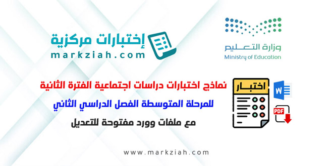 نماذج اختبارات دراسات اجتماعية الفترة الثانية للمرحلة المتوسطة الفصل الدراسي الثاني مع ملفات وورد مفتوحة للتعديل ..