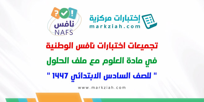 تجميعات اختبارات نافس الوطنية في مادة العلوم مع ملف الحلول للصف السادس الابتدائي ..